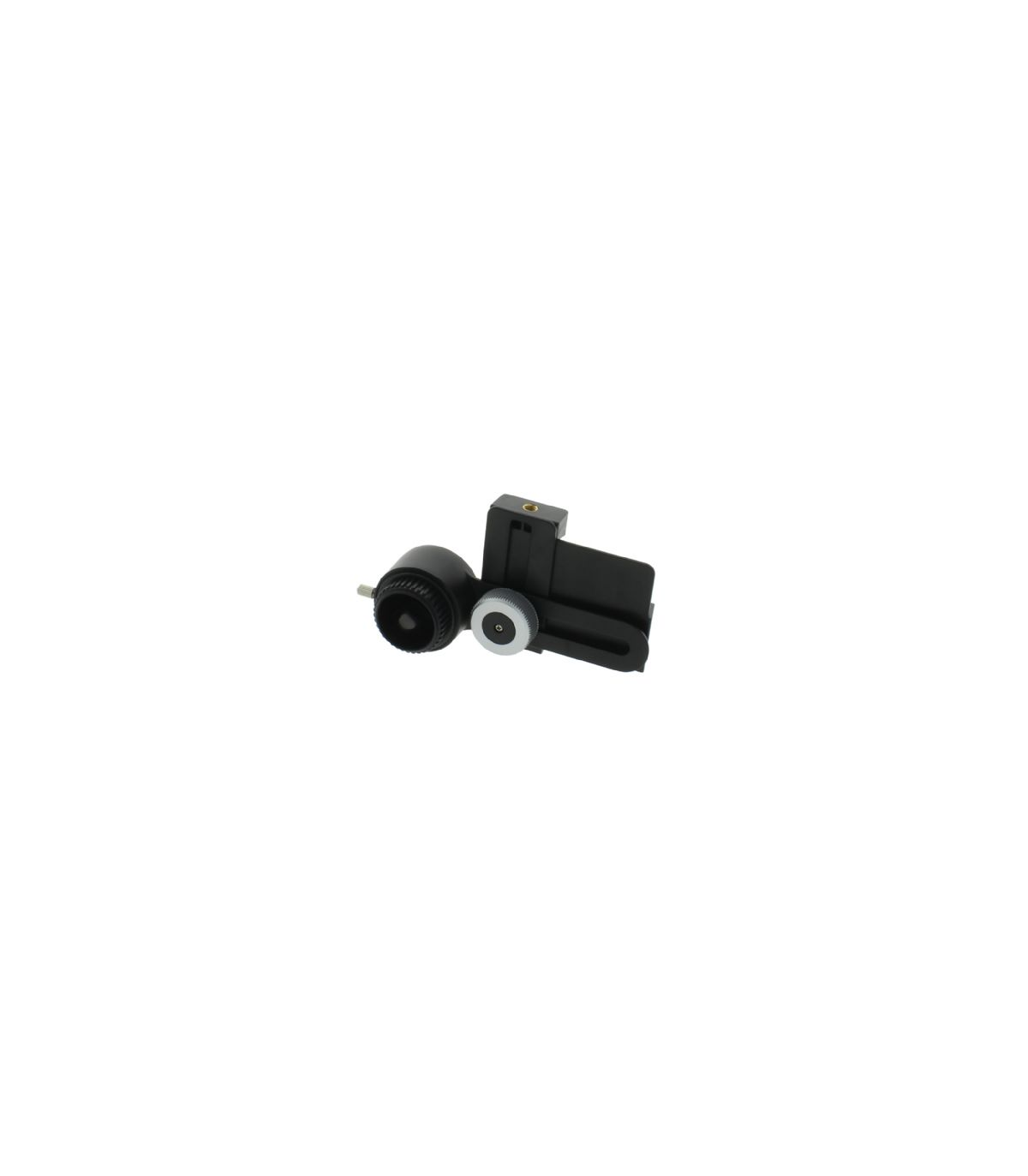 The Konustudy-4 comes with a smartphone adapter which can be used with almost all available smartphones. By mounting your smartphone on the Konustudy-4, you will be able to take picture or make movies. The adapter is compatible with all smartphones with a minimum width of 49 mm and a maximum width of 89 mm. The distance between the camera hole and the bottom of the adapter can be adjusted between 100 mm and 156 mm.