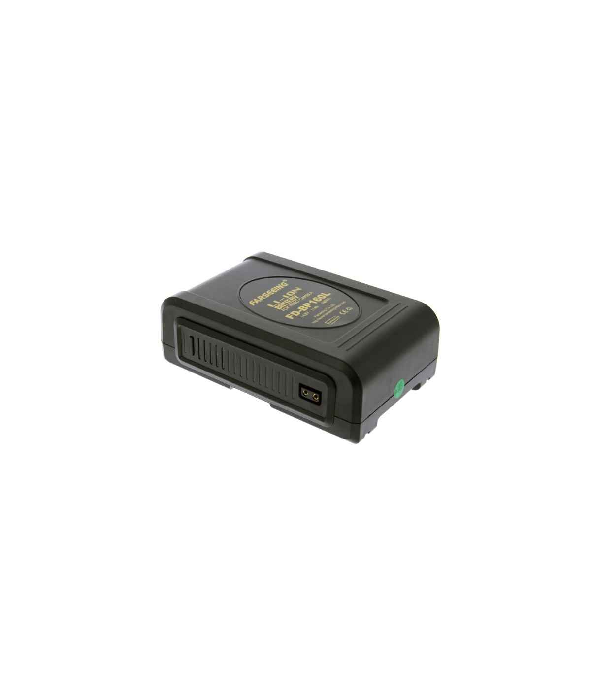 The Falcon Eyes V-Mount Battery is a Li-Ion battery with a capacity of 10.8Ah. A standard shoulder camera that uses a 20-25Wh-battery will therefore be able to be operative for up to 7 hours with this Falcon Eyes V-Mount battery. The battery status is displayed by 5 LED indicators on the side of the battery.