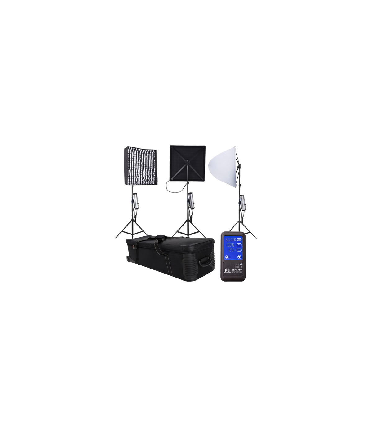 This combi consists of three RX-24TDX panels, with all necessary accessories. You will receive three I-2601 tripods, three softboxes, three honeycombs, three diffuser domes and an RC-3T remote control. The RX-24TDX panels are flexibly pliable and the CRI value of 95 ensures natural colors. The whole kit comes with a robust bag on wheels.