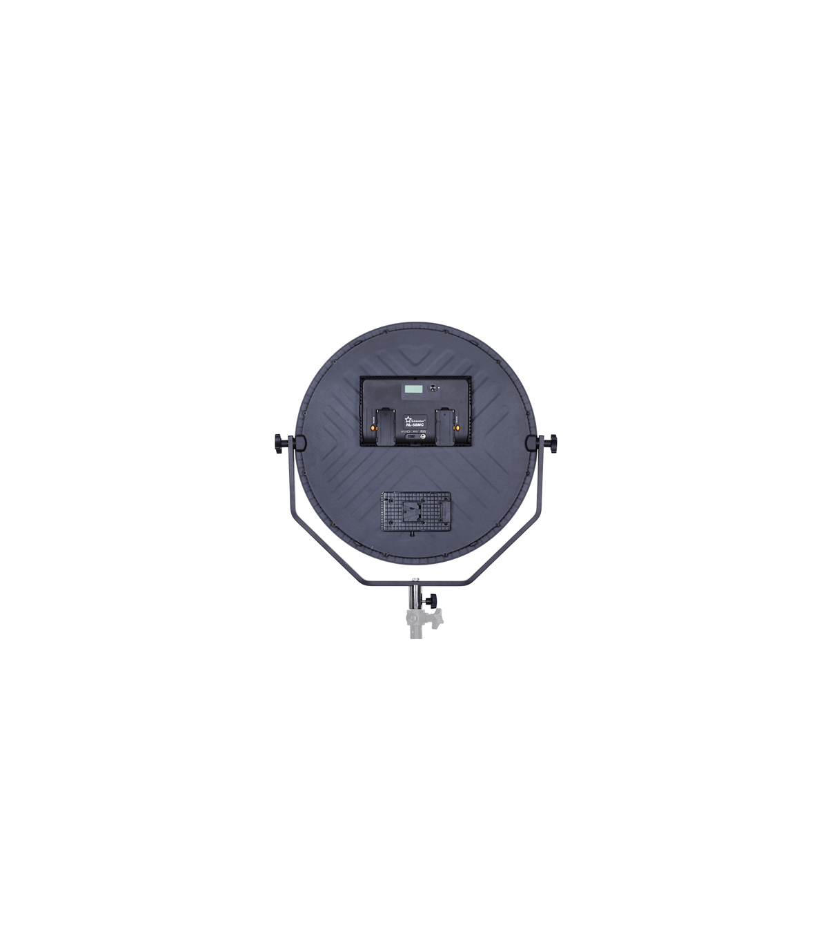 The RL-58MC is indispensable for video recordings in your studio and on location. This type of light is also increasingly being used when taking portrait photos. The soft, widespread light ensures a natural reproduction of the subject. Thanks to the spigot connection, the RL-58MC fits on virtually any lamp stand. The lamp has hinge points on the sides. This allows the lamp to be adjusted at almost any angle. By means of the control panel on the back of the lamp you can control several lamps simultaneously with one control panel. All you have to do is set the lamps on the same channel (OFF to 9). When you use different types of lamps from the RL-MC series, you can also control them simultaneously with the desired lamps on the same channel.