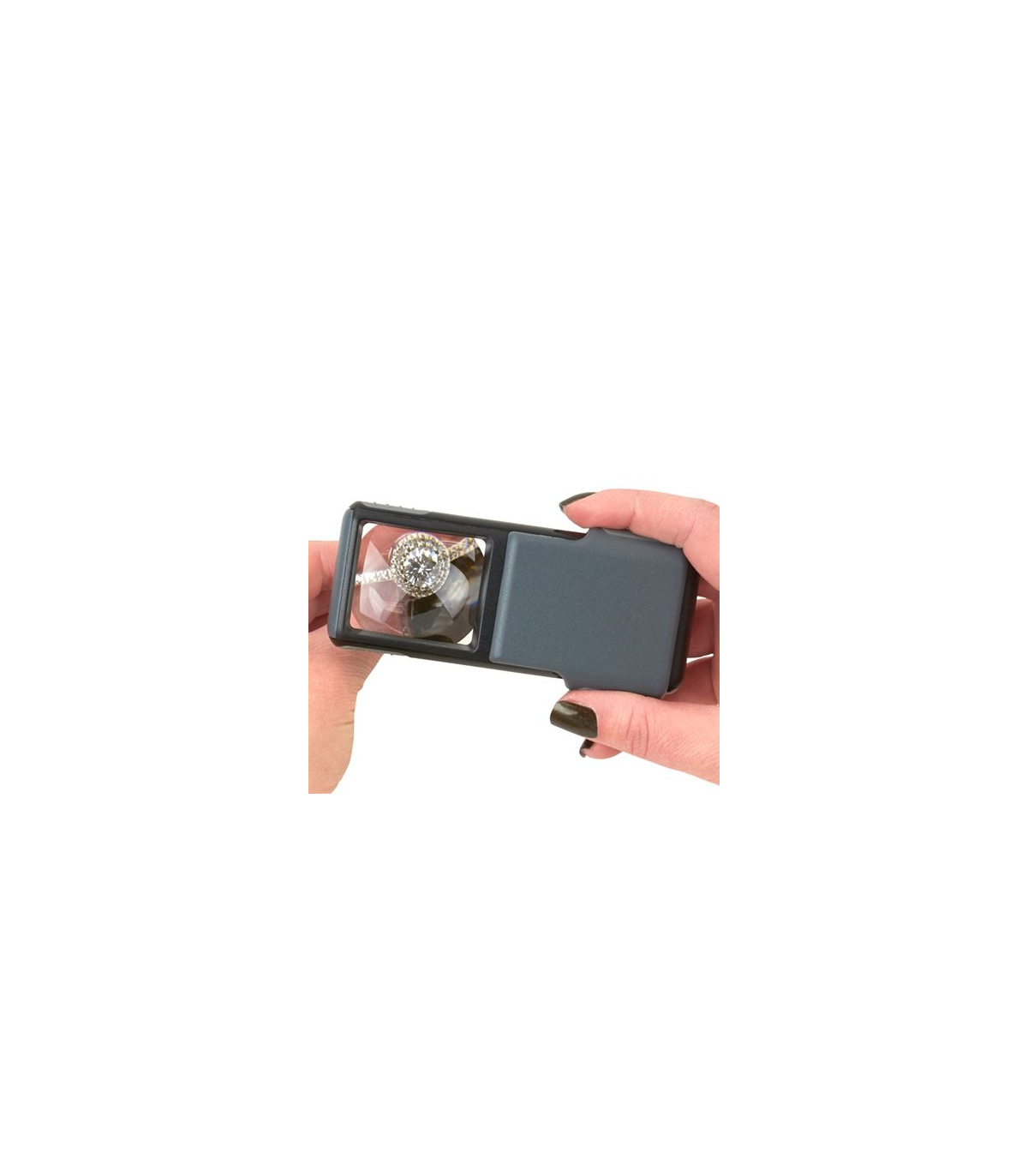 The pocket loupe can be used for every conceivable application. Whether you want to observe coins or diamonds, look at insects or just read a book, in either high or low light: this compact LED magnifier is always useful! If you want to use the magnifier's lighting, you need to put three AAA batteries (not included) in the compartment. By moving the body upwards, you can use the magnifier with lighting. By moving the body downwards you can safely hide the magnifier behind the plastic housing.