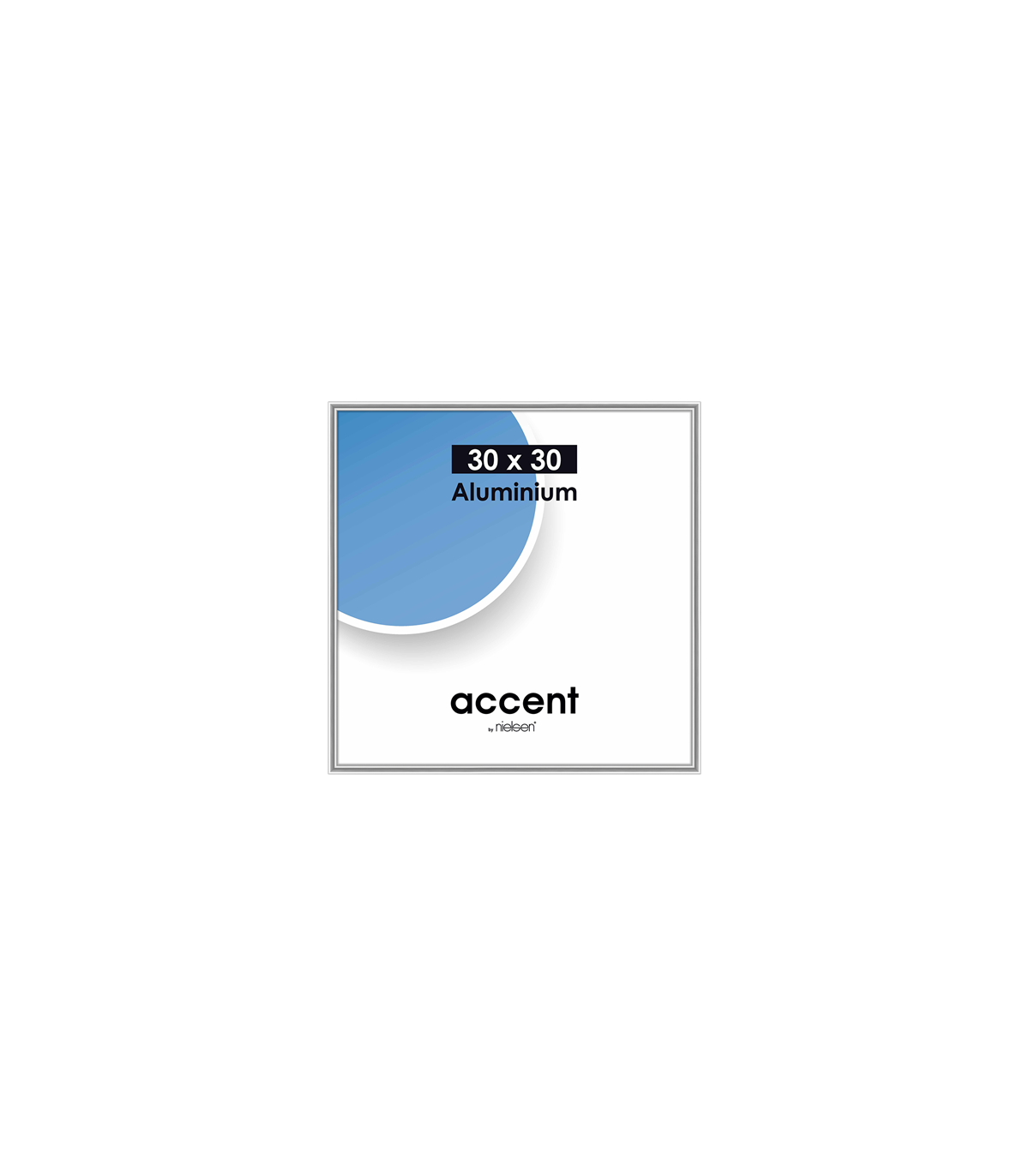 The Nielsen Photo Frame 54123 Accent Silver 30x30 cm is a silver picture frame suitable for 1 picture. You can insert a picture of 30x30 cm in this frame. The picture frame is characterized by its aluminium look. The total dimensions, including the frame, are 32x32 cm.