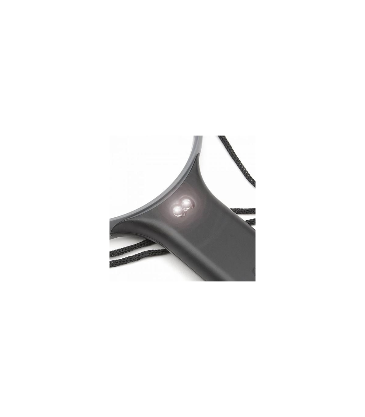 The magnifying glass has a 2x magnification and lens diameter of 110mm. In addition, the magnifying glass has a spot lens (4x) to bring small parts closer. To illuminate objects, the loupe is equipped with LED lighting, which is powered by two AA batteries (not included). For a high level of comfort, this cord is adjustable, so that you can place the magnifying glass in the desired position yourself. On both legs there are two rubber 'pads', with which you can comfortably put the magnifying glass against yourself. The necklace magnifier is also known as an embroidery magnifier.
