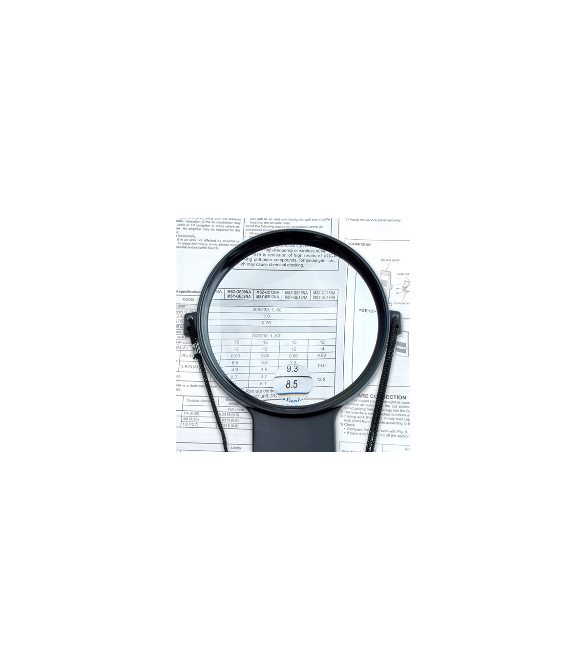 The envelope magnifier is a popular accessory to use when reading, crafting, knitting and embroidery. How does it work? Simply hang the magnifier with carrying cord around your neck and set the cord at a comfortable angle and viewing distance. Finally, install two AA batteries in the battery compartment. Now you can use the magnifying glass for hours at a time, while keeping your hands free at all times.